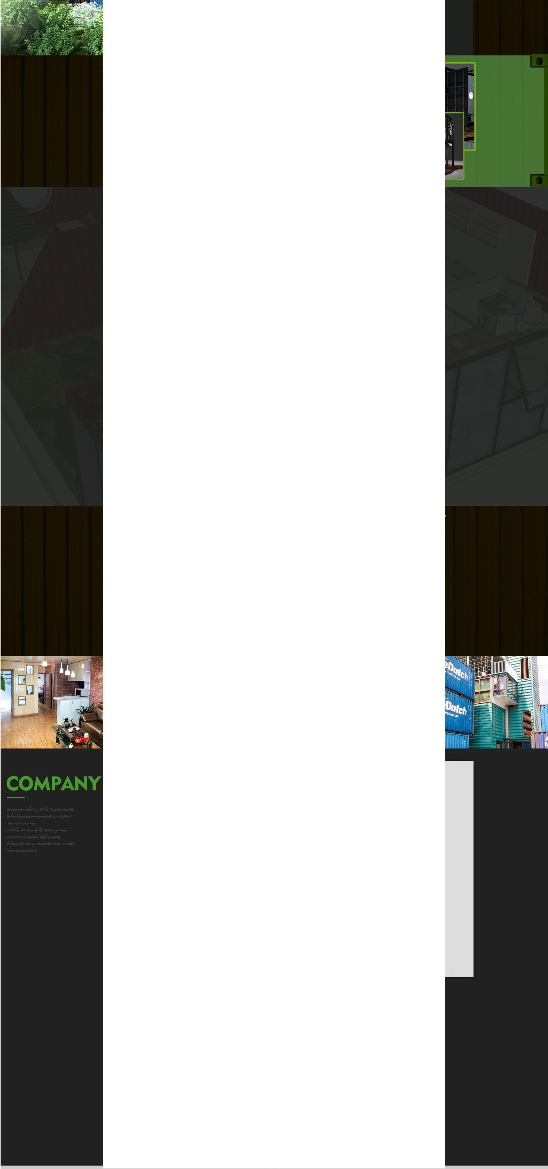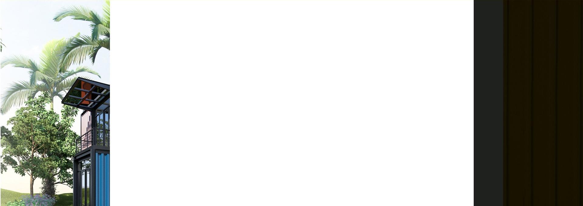 Contenedor prefabricado abierto, casas y tiendas comerciales en un lado